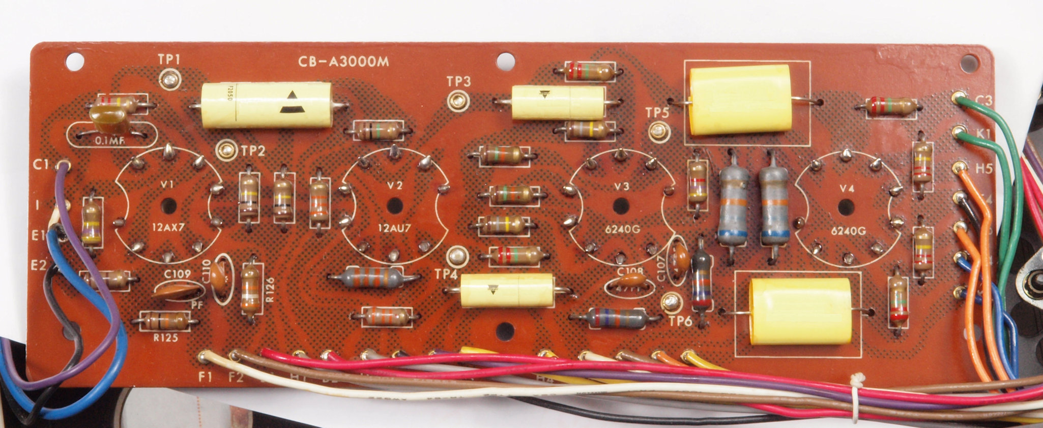 C12. 修理中 前段AMP基板。真空管ソケットを外し、洗浄後。