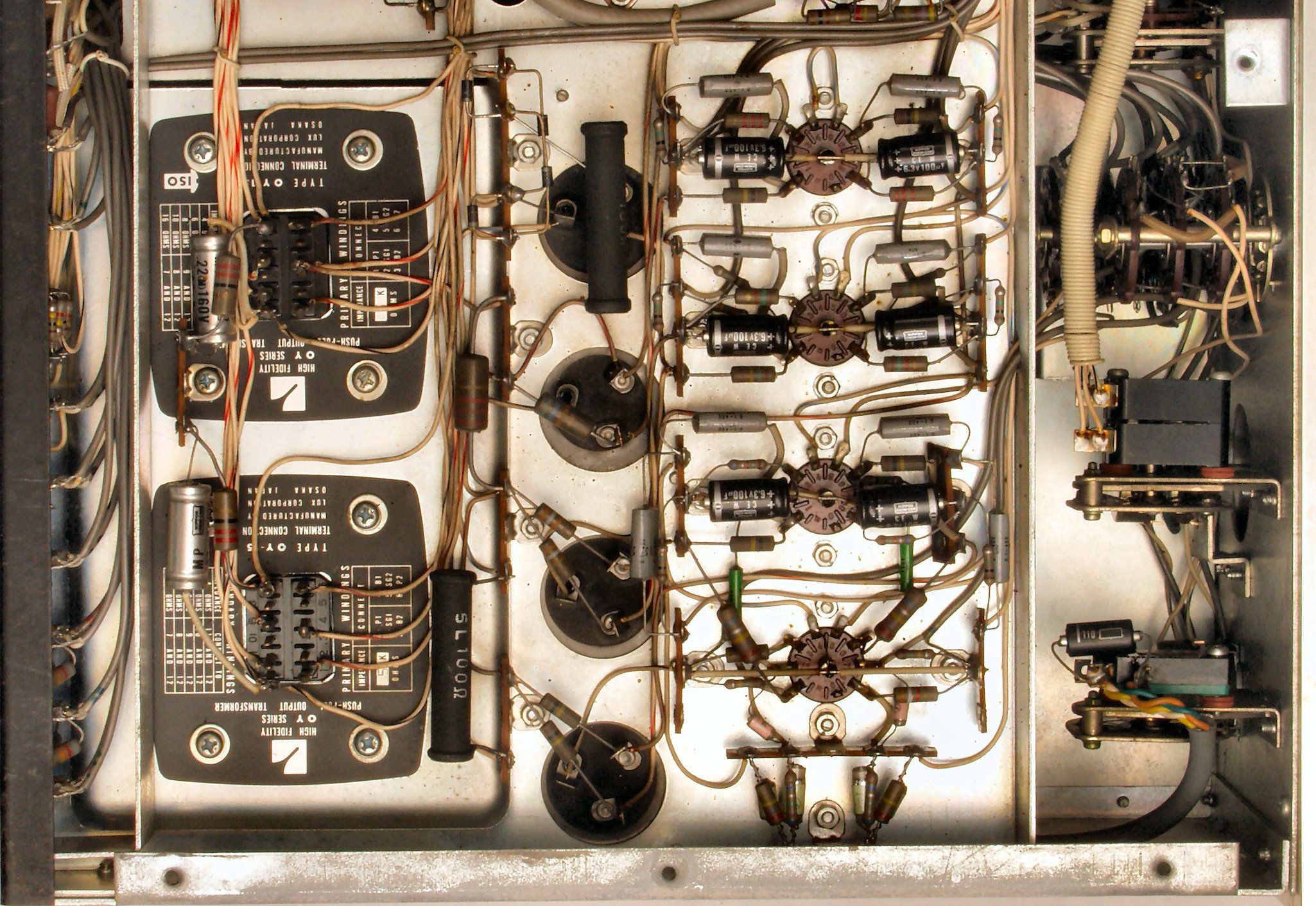 | C5A. 修理前、出力真空管50CA10、前段真空管6DT8・6267のソケット。 | ||||||||||||||||||||||||||||||