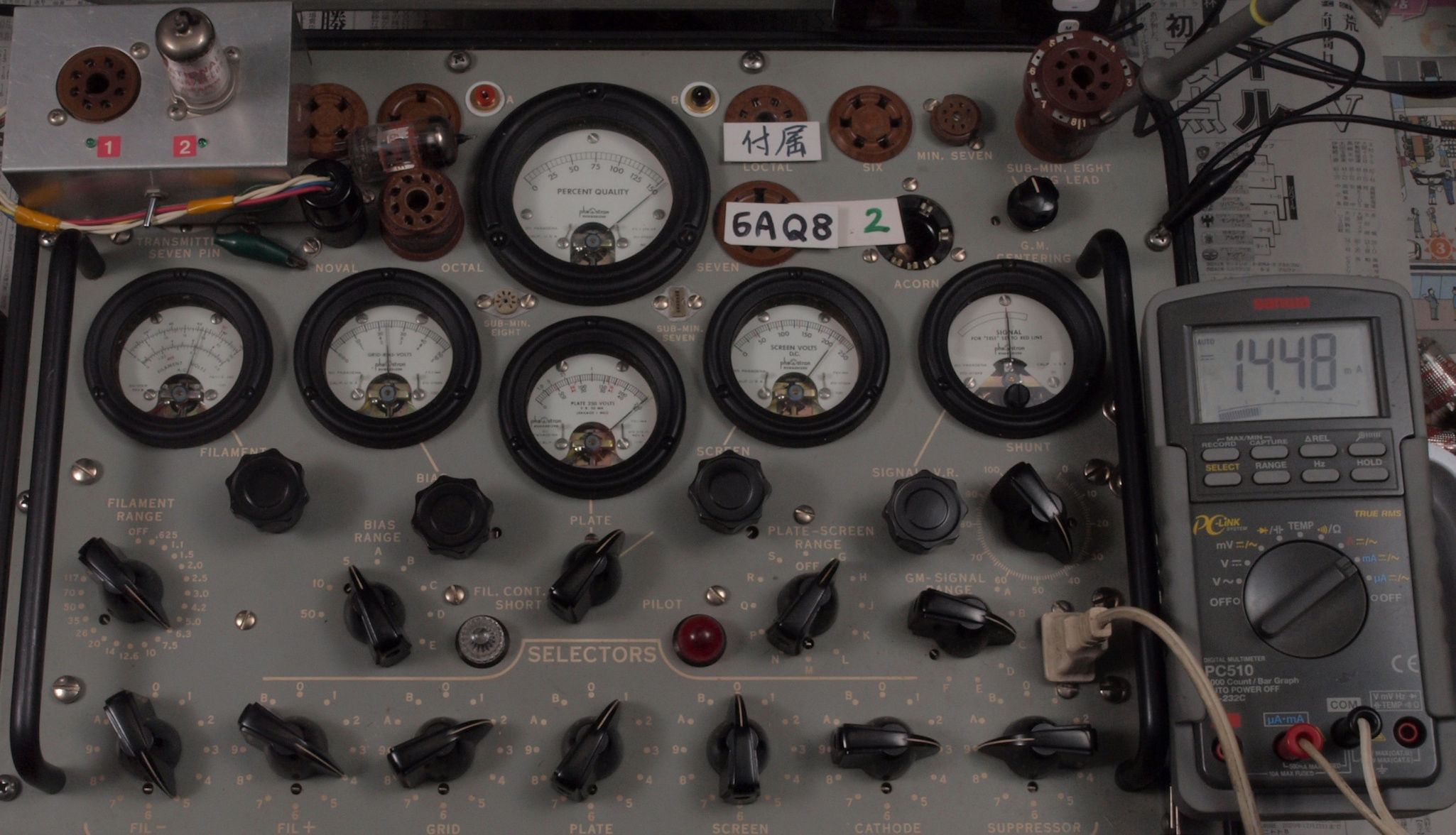 | V312. 購入1本目 6AQ8 ユニット2。 Gm測定=6150μmho、IP=9.21mA。 |