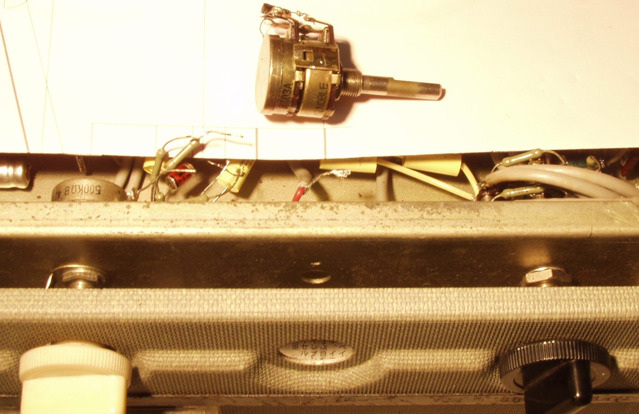 A−3. 修理前 液漏れのコンデンサー、真空管6BQ5のソケットはガタガタ