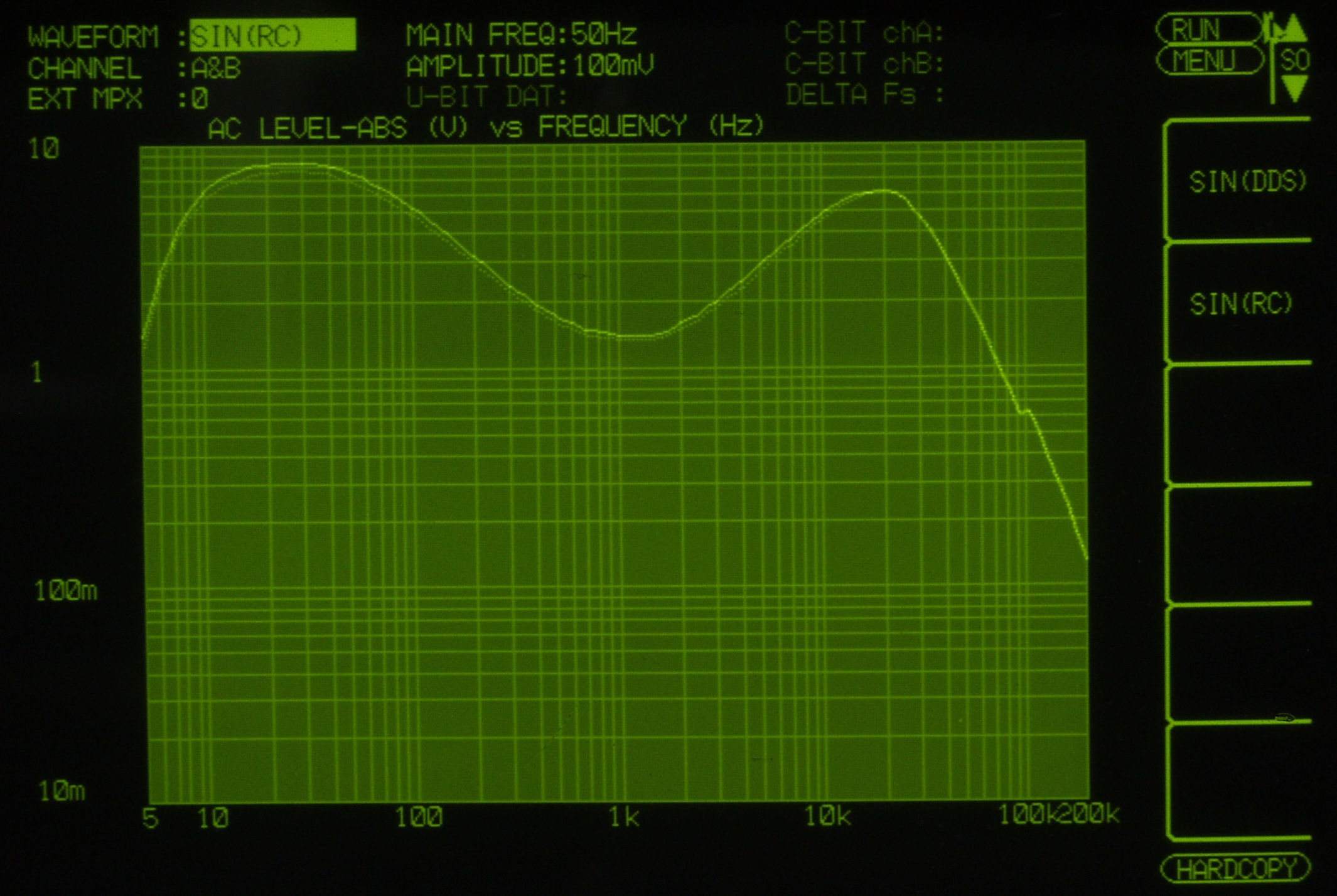 F0. 下のオーディオアナライザーVP−7732Aで自動測定。