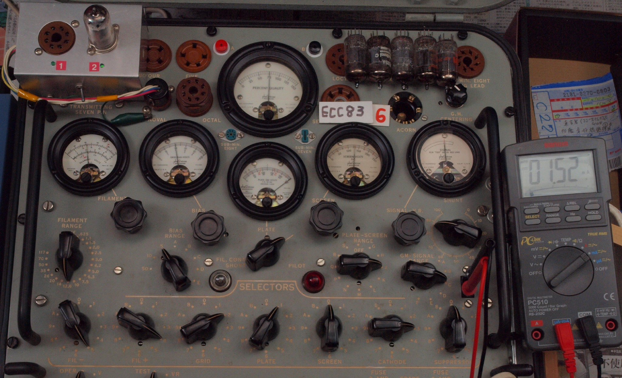 V62. 購入6本目 ECC83 ユニット2。 Gm測定=2100μmho、IP=1.82mA。