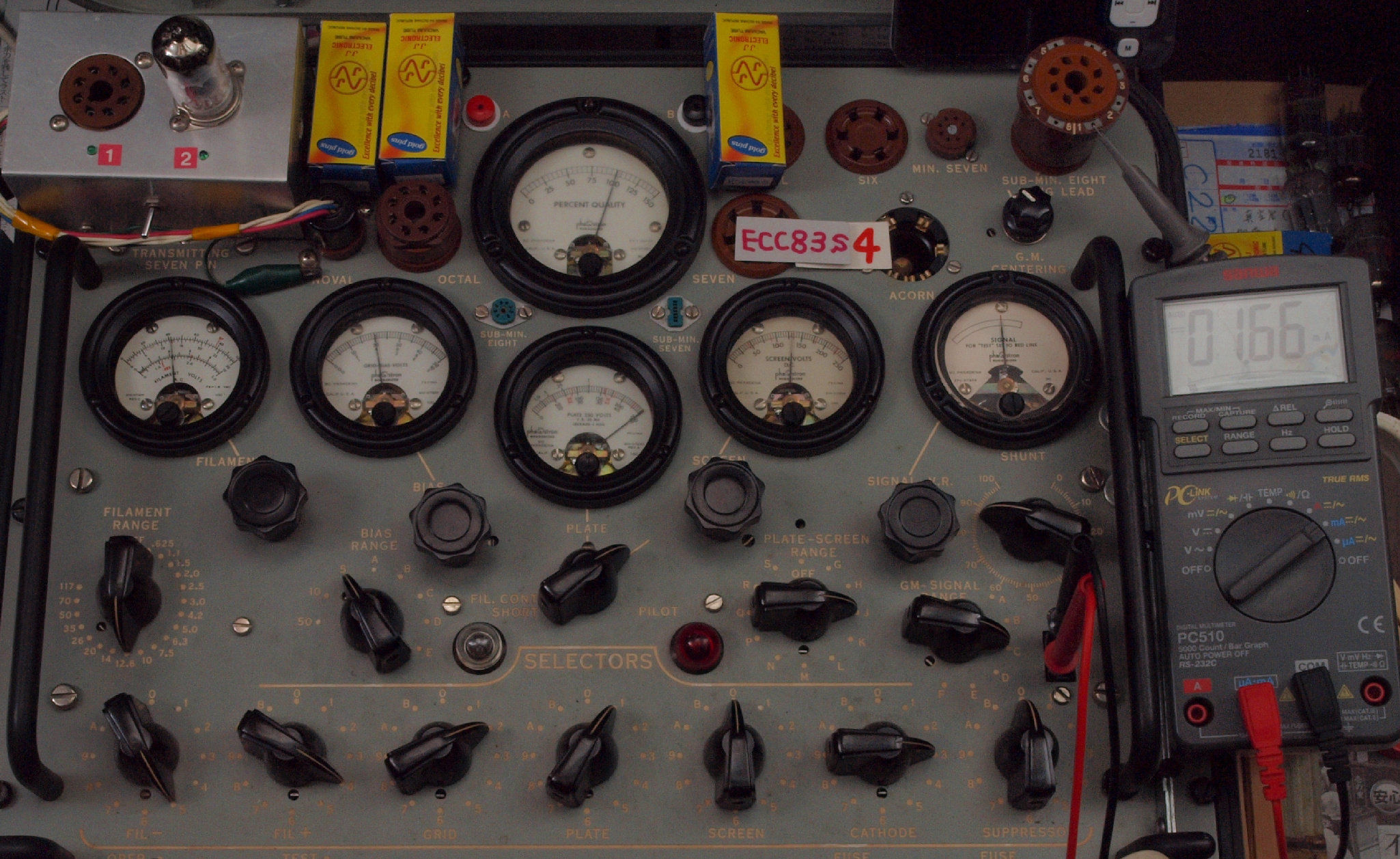 V41. 購入4本目 ECC83 ユニット1。 Gm測定=2000μmho、IP=1.66mA。