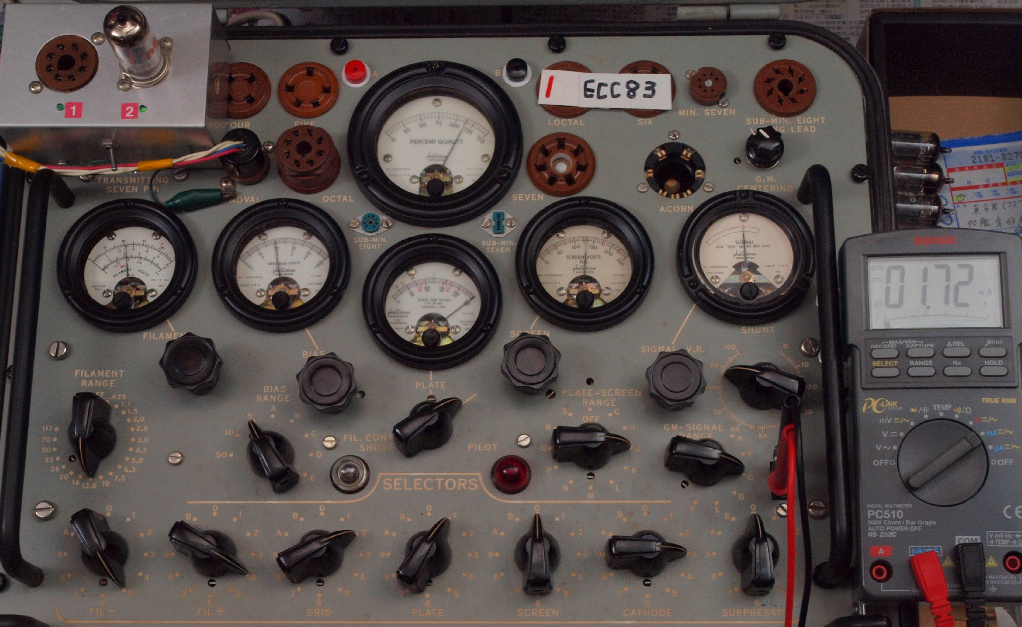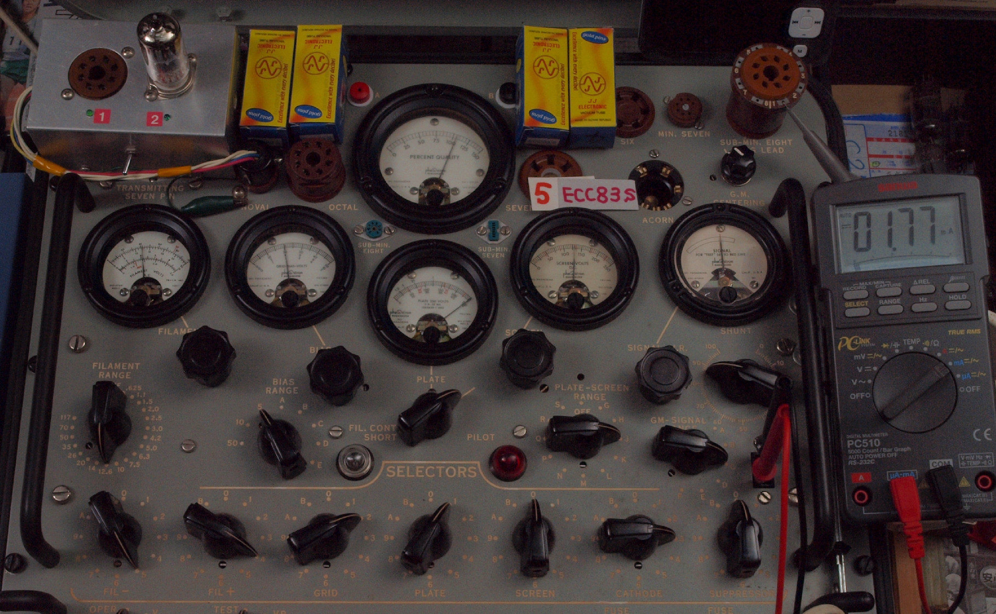 V51. 購入5本目 ECC83 ユニット1。 Gm測定=2100μmho、IP=1.77mA。