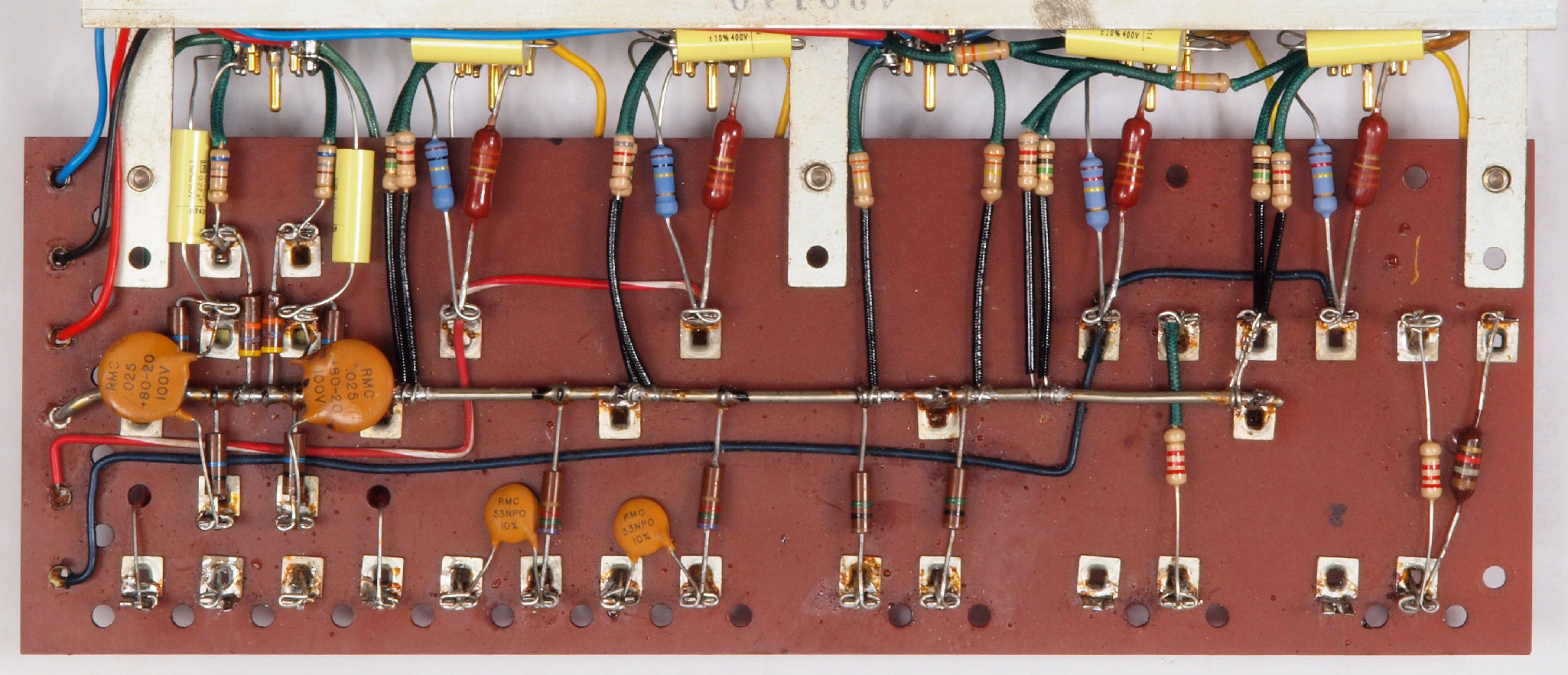 C34. 修理後  メイン基板裏 フイルム・コンデンサー6個、抵抗18個交換