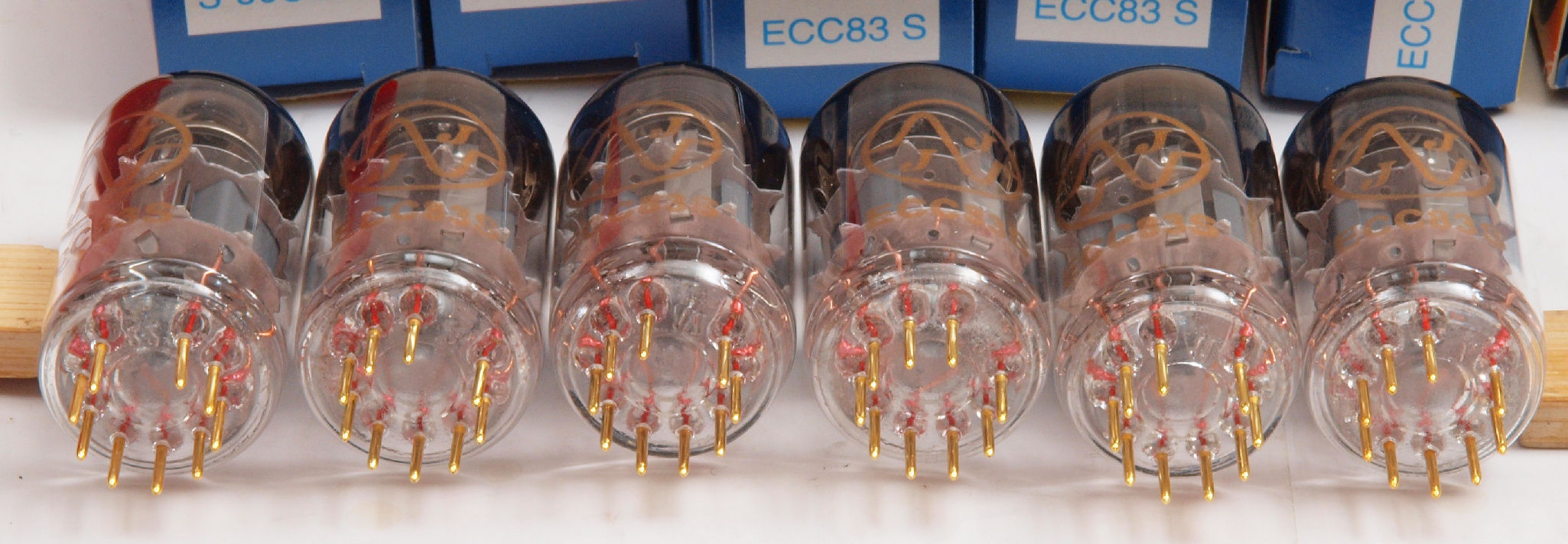 A81. 点検中 付属真空管 ECC83。 右から1番目、2番目、、、、6番目。