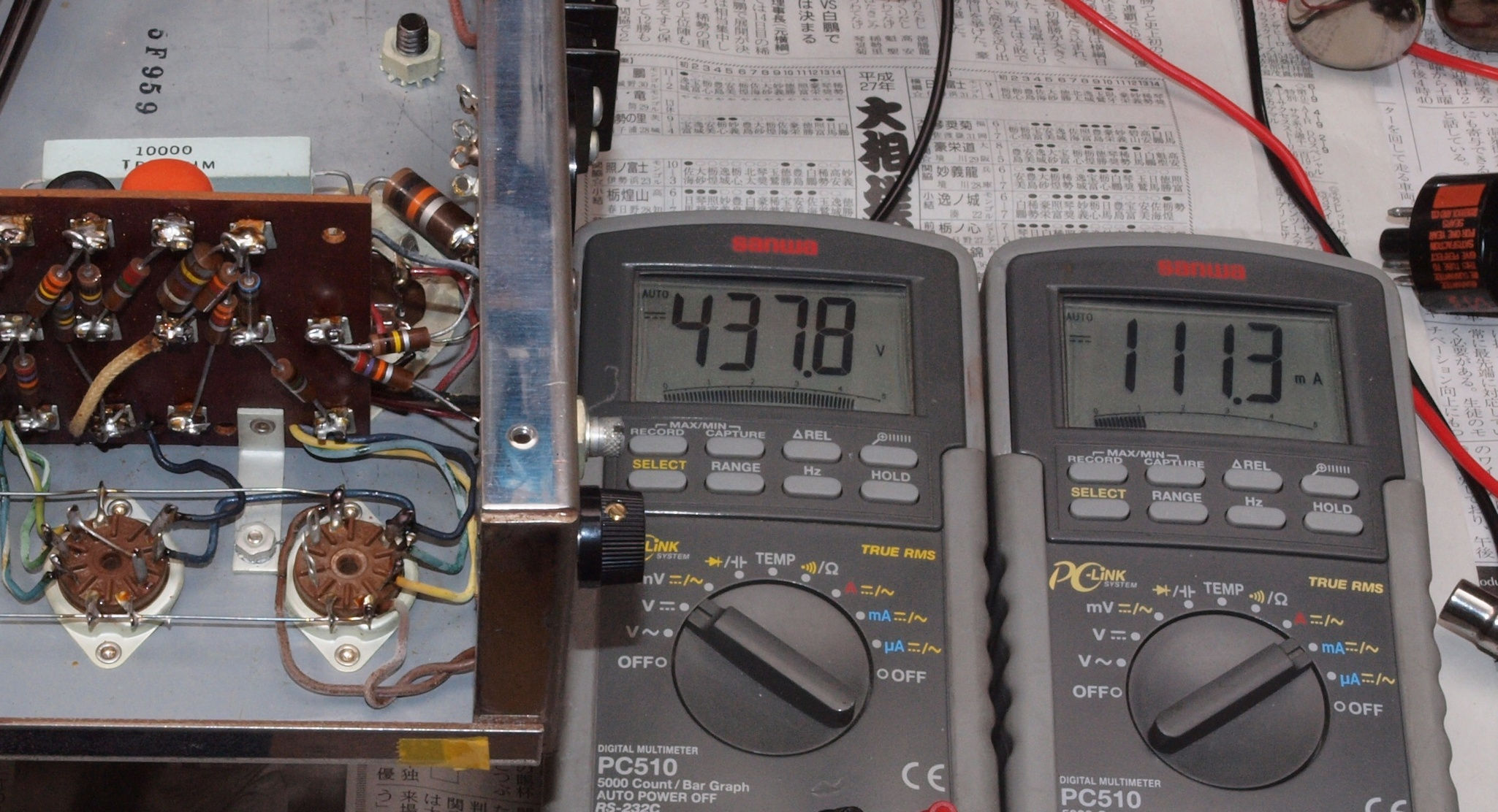 | R1. 付属整流真空管5T4を2本使用。高圧電圧=437.8V、電流=111.3mA. | ||||||||||||||||||||||||