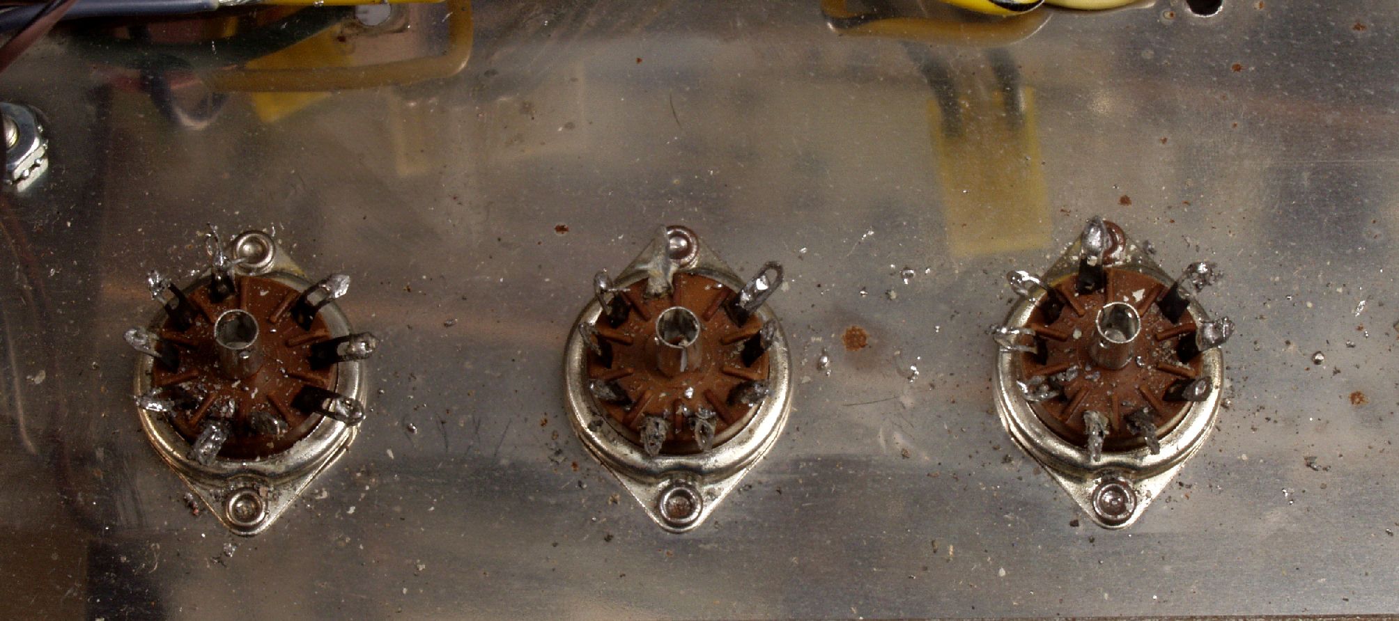 | C2D. 修理中 12AX7MT真空管ソケット周りの配線を外す、酸化鉛が沢山でる2。 | ||||||||||||||||||||||||