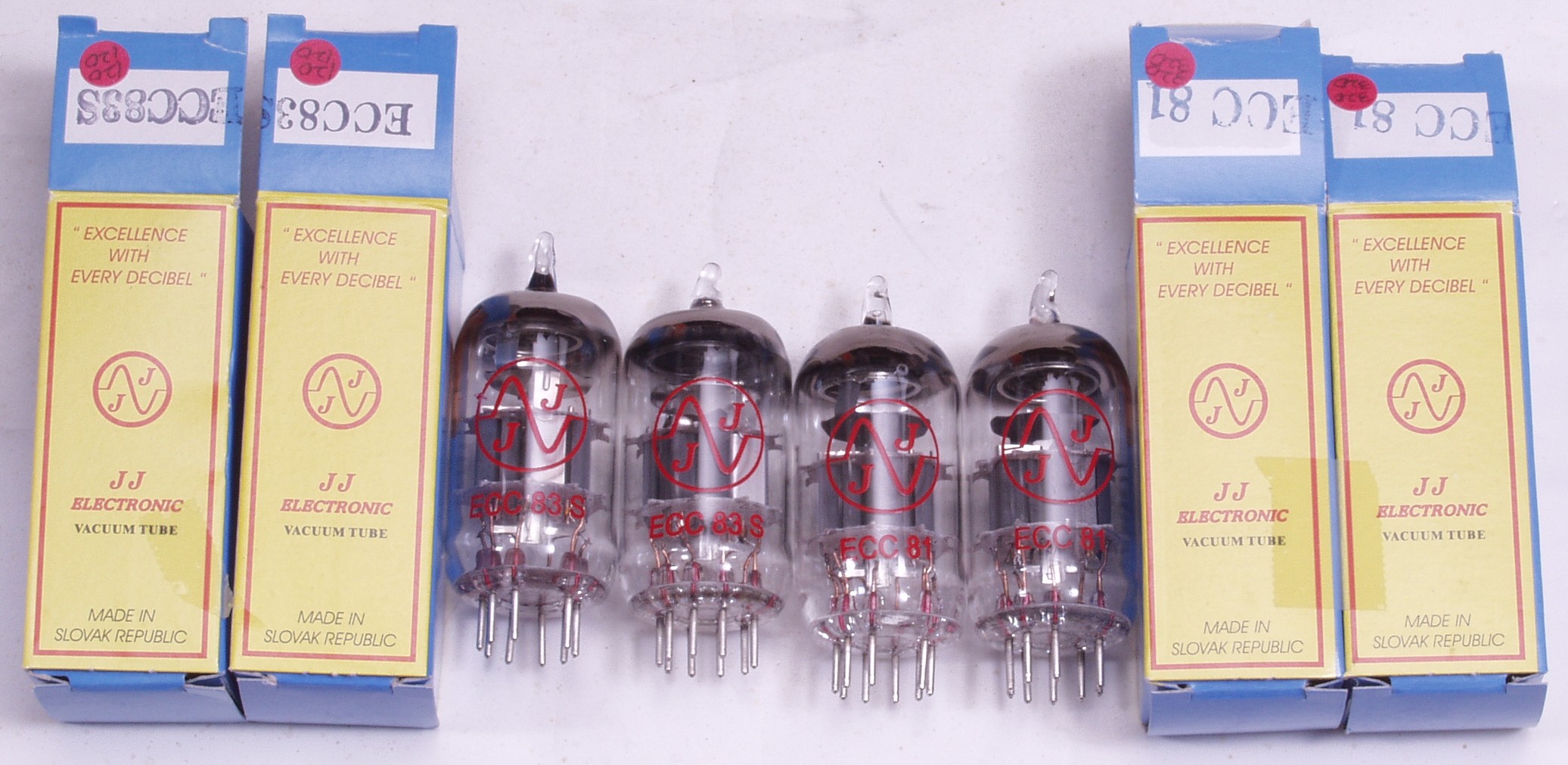AA1. 修理前点検 ユーザーが購入した新しい真空管 右=ECC83 左=ECC81 殆ど外観は」同じ