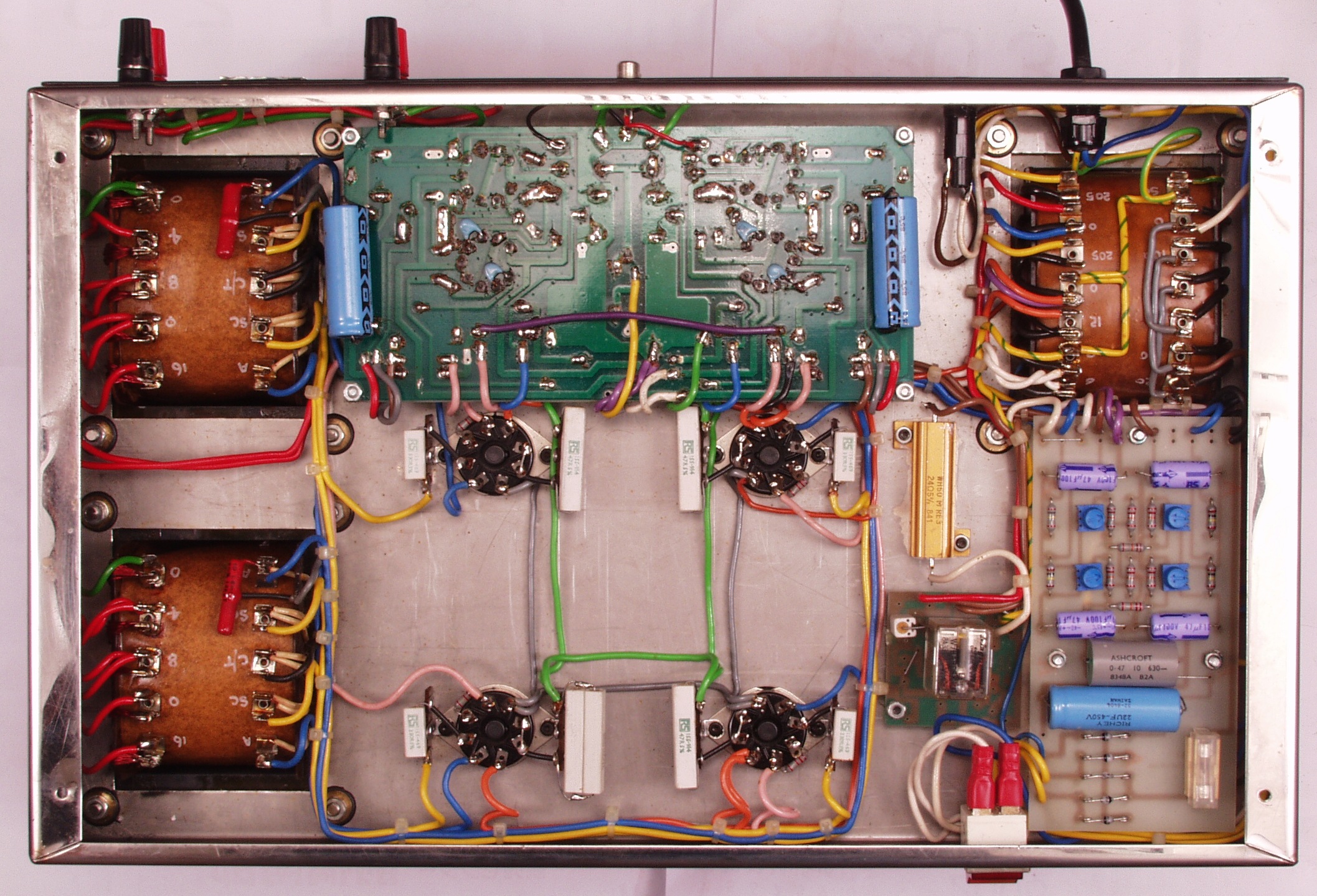 初段がECC83(12AX7)差動プッシュプルです。共通カソードになっていて、差動回路として動作します。