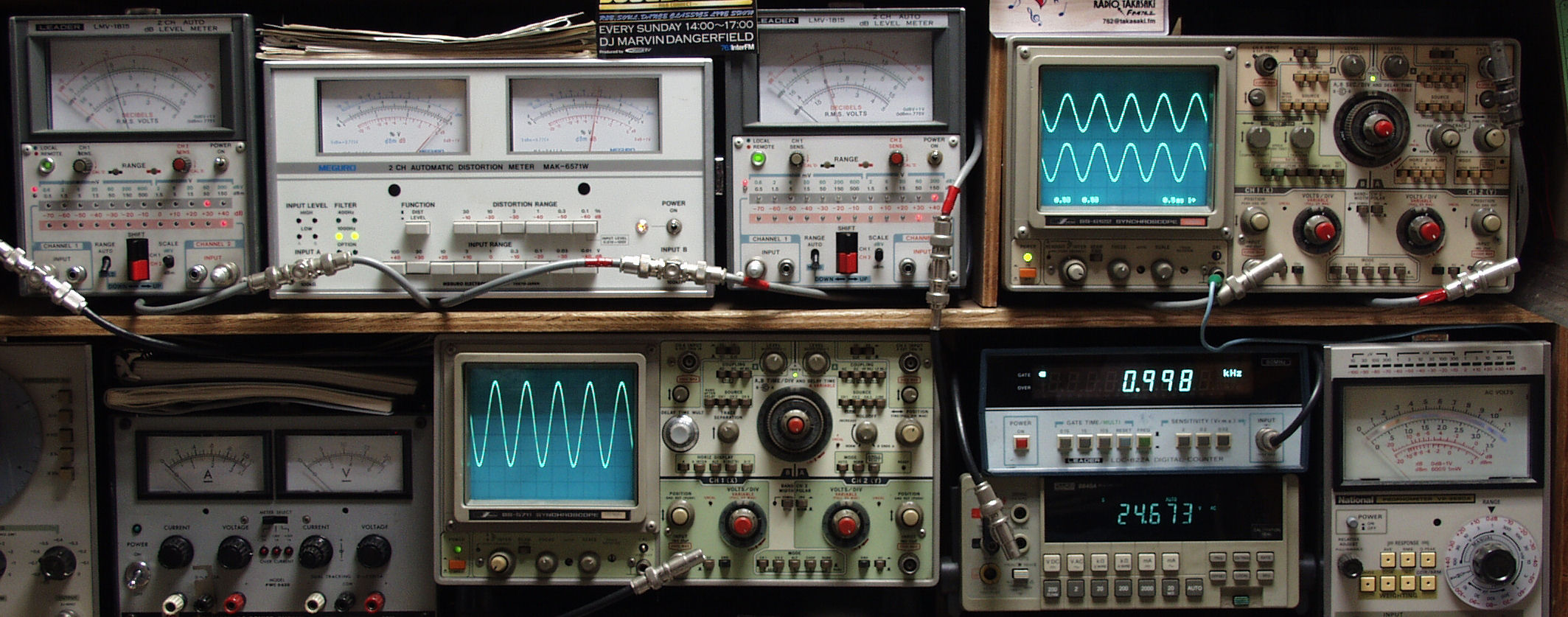上段中左 歪み率計=SP出力の歪み率測定 左メータ=L出力、右メータ=R出力。