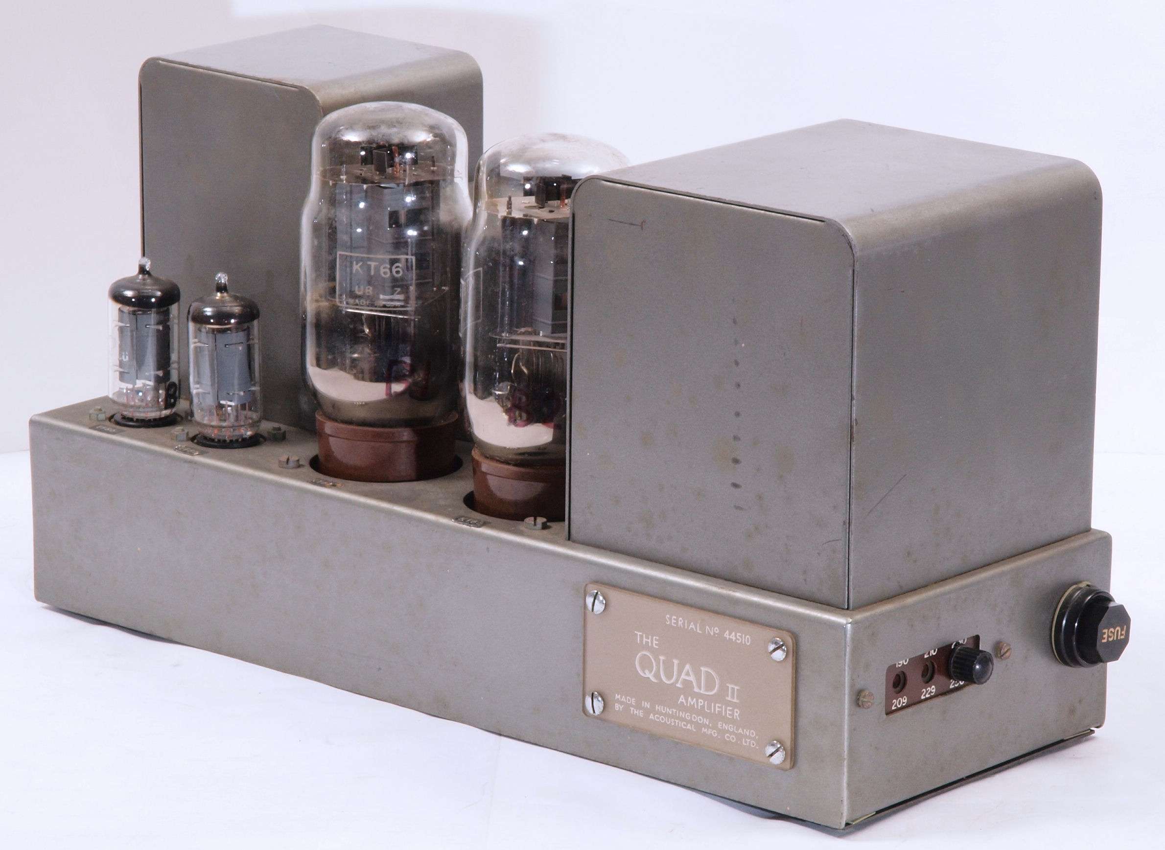 | U2. 付属真空管 「KT66」、左から1、2本目=QUADU A用。3、4本目=QUADU B用。 | ||||||||||||||||||||||